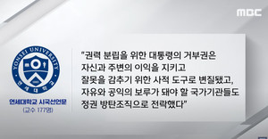전국 곳곳에서 윤석열 정부를 비판하는 대학 교수들의 시국선언문이 잇따르고 있는 가운데, 연세대 교수 177명도 시국선언문을 내고 윤 대통령의 퇴진을 촉구했다.연세대 교수 177명은 21일 ‘당신은 더이상 우리의 대통령이 아니다’라는 제하의 시국선언문을 내고 “윤석열 대통령은 그동안 저지른 불의와 실정에 대해 사죄하고 하루 빨리 대통령의 자리에서 물러나라”고 밝혔다.이들은 2600여자에 이르는 시국선언문에서 이태원 참사, 채 상병 사건, 역사 왜곡, 호전적 대북정책, 부자 감세, 의료 대란 등의 실정을 짚으며 윤석열 정부에 대한 깊은