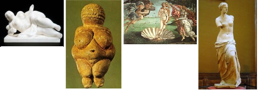 빌렌도르프의 비너스는 인체비례는 중요하지 않고 주술적 의미로 다산을 상징하기에 인체비례는 중요하지 않았습니다. 그리고 밀로의 비너스는 이상적인 인체 비례를 중요하게 여겨 황금비례를 맞춰 제작하려 했고, 비너스의 탄생 역시 인체비례를 연구해 그리스 때와 비슷하게 인체비례를 그대로 맞추려고 했습니다.