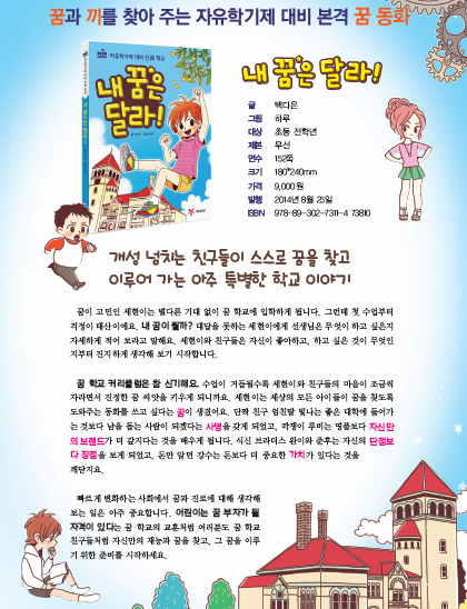 2016년 전면 시행을 앞두고 있는 자유학기제를 대비하여, 꿈 동화 '내 꿈은 달라!'는 꿈 학교 수업으로 꿈을 찾고 그 꿈을 이루기 위한 준비를 할 수 있도록 체계적으로 구성됐다. 이 수업을 따라 할 수 있도록 다양한 활동 자료도 넣었다. 백다은 글, 하루 그림, 152쪽, 9000원, 예림당