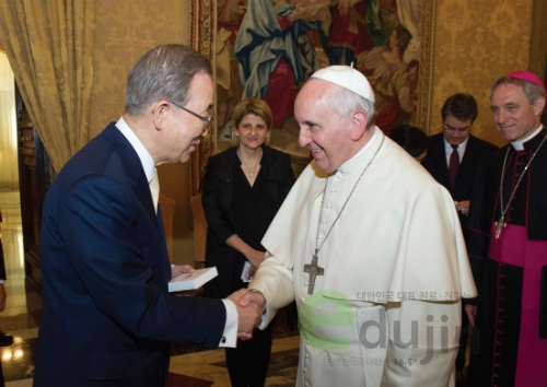 | ▲ 반기문 총장과 프란치스코 교황<사진제공=뉴시스> | ||