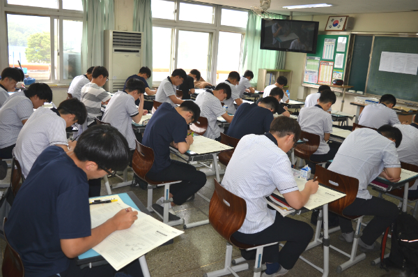 | ▲ 학업성취도 평가 시험을 치르는 학생들 [사진 제공=충북교육청] | ||