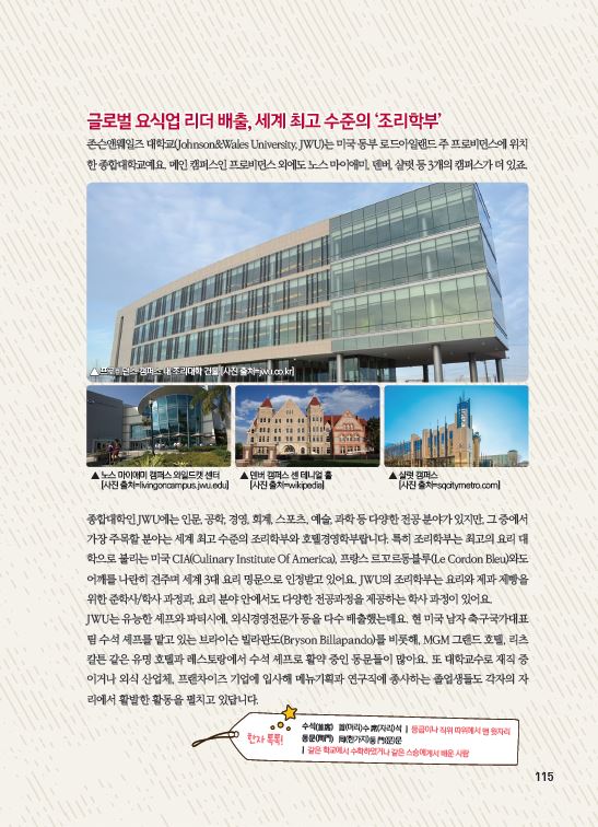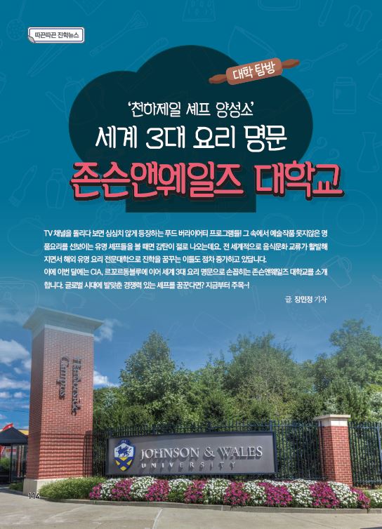 이에 이번 달에는 CIA, 르꼬르동블루에 이어 세계 3대 요리 명문으로 손꼽히는 존슨앤웨일즈 대학교를 소개합니다. 글로벌 시대에 발맞춘 경쟁력 있는 셰프를 꿈꾼다면? 지금부터 주목~!