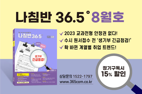 경쟁력 있는 나만의 학생부 만드는 비법이 매달 손안에 들어온다면? 학종 인재로 가는 길잡이 나침반 36.5도와 함께라면 가능합니다. 매달 선명해지는 대입로드를 직접 확인하세요!