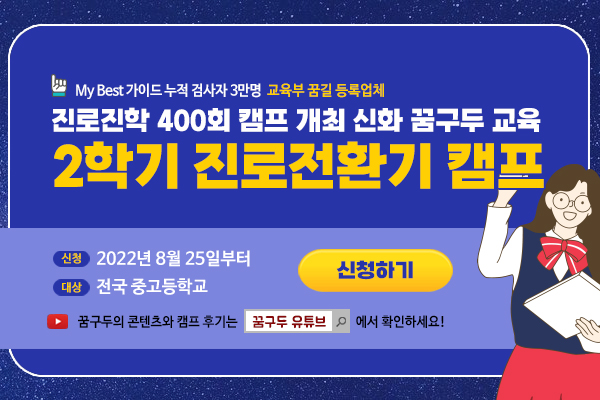 '꿈구두' 교육플랫폼은 교육정보에 소외된 지역에 골고루 정보를 공유하며 공교육의 상향평준화를 위해 노력하는 기업입니다. 전국의 선생님과 학생의 미래를 돕기 위해 노력하고 있습니다. '꿈구두 교육플랫폼' 프로그램 및 콘텐츠 문의 010-2618-0187