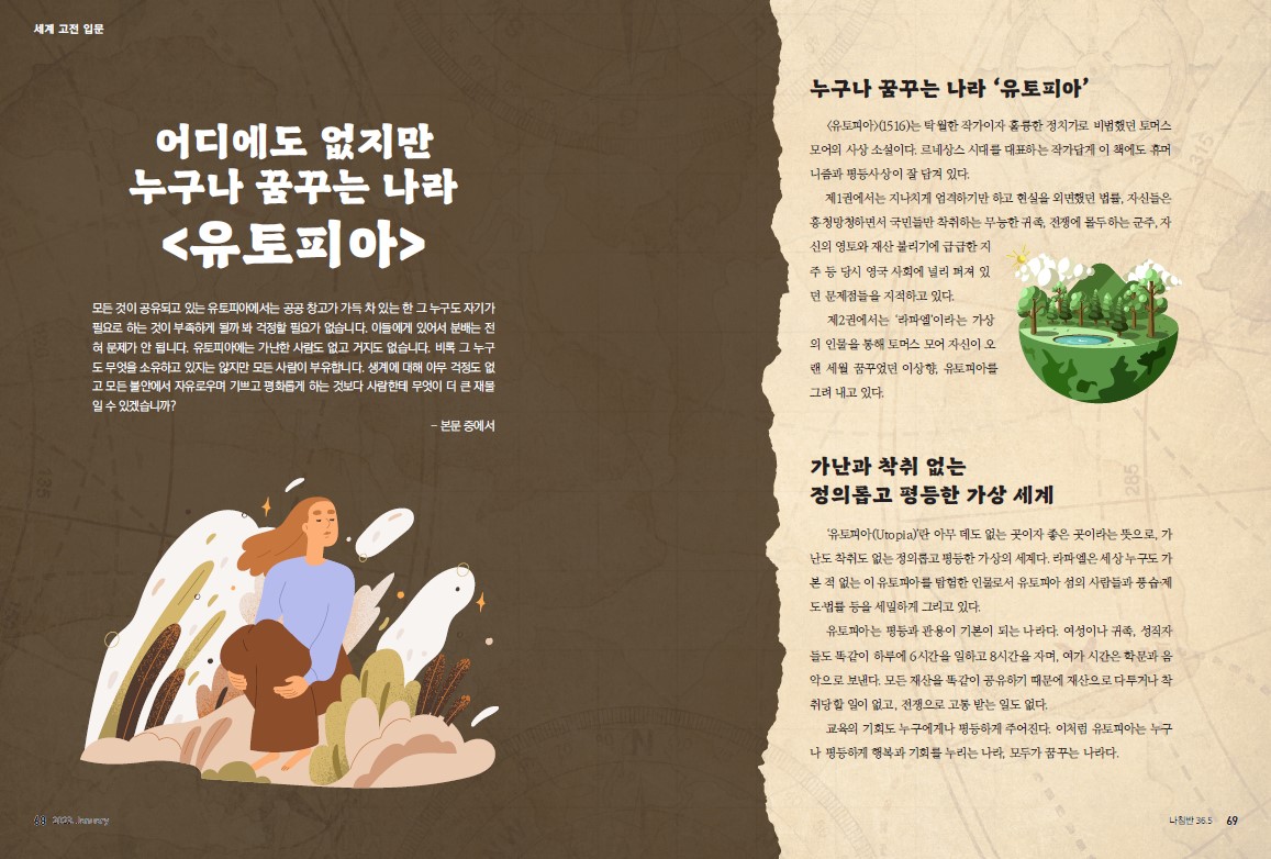 교육의 기회도 누구에게나 평등하게 주어진다. 이처럼 유토피아는 누구나 평등하게 행복과 기회를 누리는 나라, 모두가 꿈꾸는 나라다.