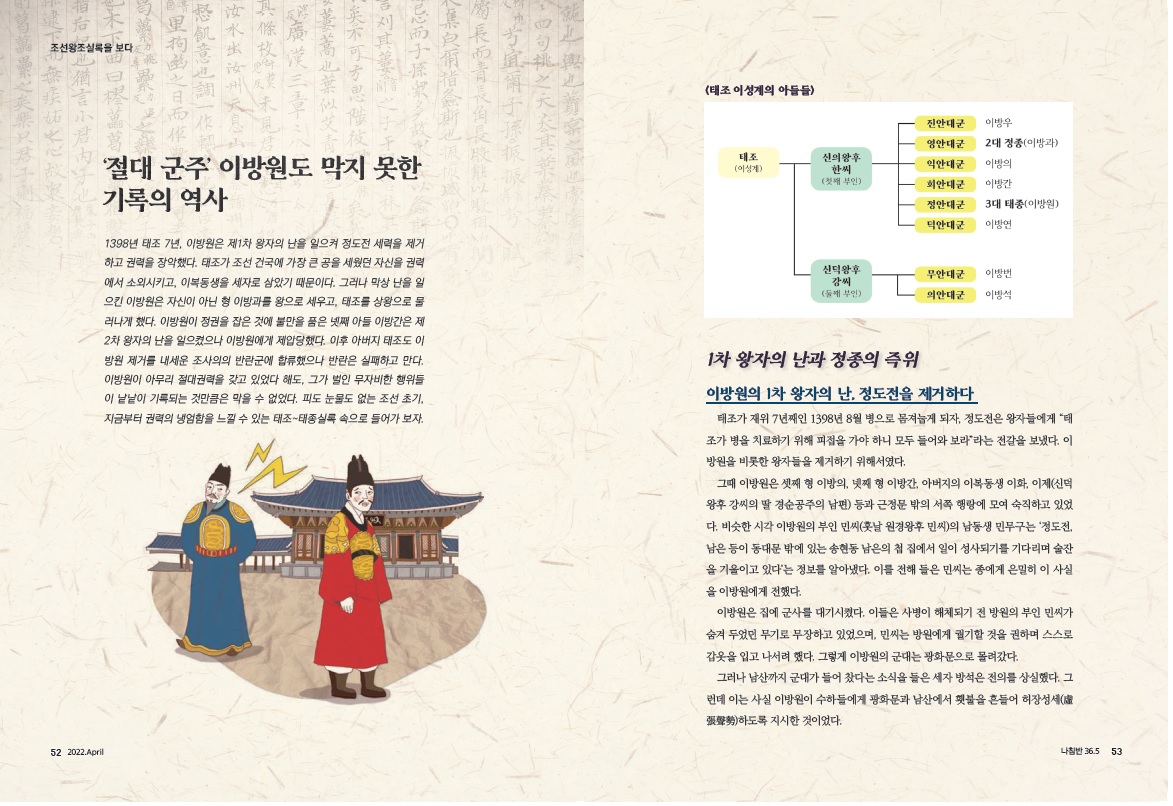 이방원이 아무리 절대권력을 갖고 있었다 해도, 그가 벌인 무자비한 행위들이 낱낱이 기록되는 것만큼은 막을 수 없었다. 피도 눈물도 없는 조선 초기, 지금부터 권력의 냉엄함을 느낄 수 있는 태조~태종실록 속으로 들어가 보자.