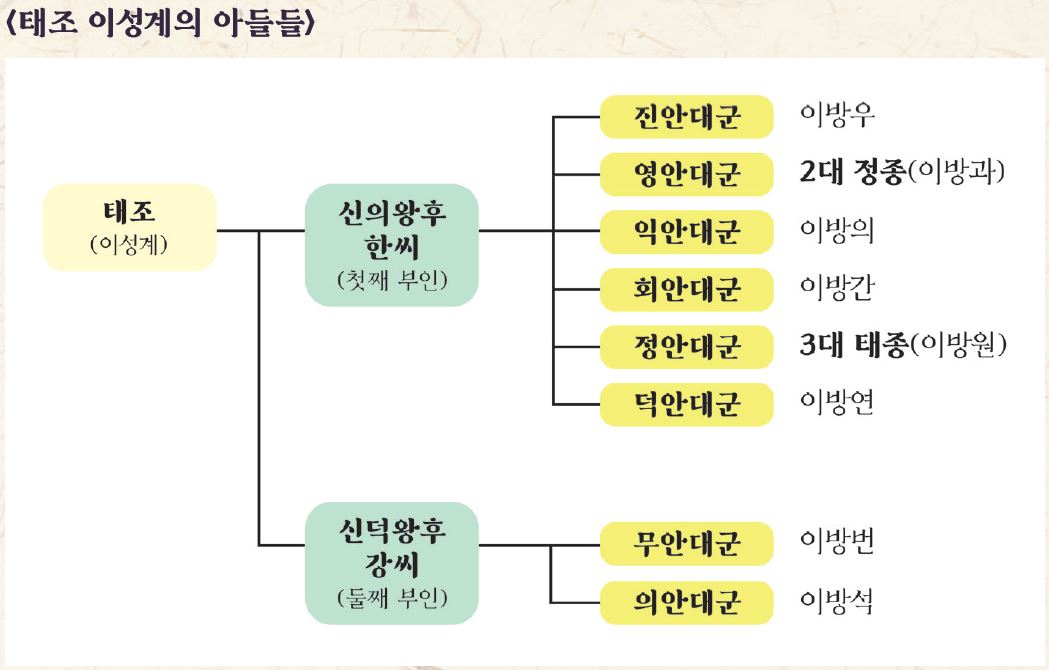 1398년 태조 7년, 이방원은 제1차 왕자의 난을 일으켜 정도전 세력을 제거하고 권력을 장악했다. 태조가 조선 건국에 가장 큰 공을 세웠던 자신을 권력에서 소외시키고, 이복동생을 세자로 삼았기 때문이다.