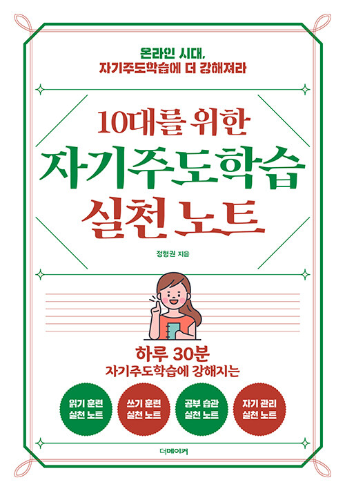 자기주도학습 코치 정형권 저자의 『10대를 위한 자기주도학습 실천노트』는 학습동기와 공부습관을 직접 해보면서 실제로 몸에 익힐 수 있는 프로그램으로 구성되어 있다. 교육 현장에서 실제로 사용되고 있는 이 프로그램은 저자의 오랜 코칭 경험과 노하우가 고스란히 담겨있다.