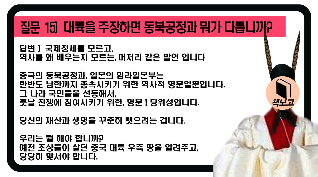 질문 15] 대륙을 주장하면 동북공정과 뭐가 다릅니까?