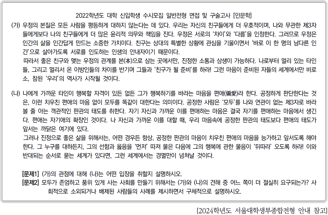 제시문 기반 면접은 서울대, 연세대, 고려대 등 최상위권 대학과 더불어 일부 의과대학에서 실시하는 면접 방식이다.