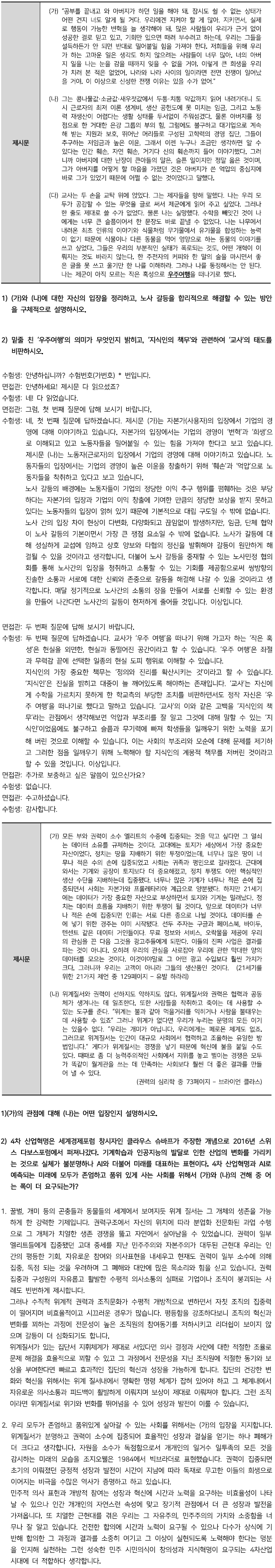 다음은 강원진학지원센터에서 제공하는 서울대 인문 면접 모의 문제와 예시 답안을 나타낸 것이다.